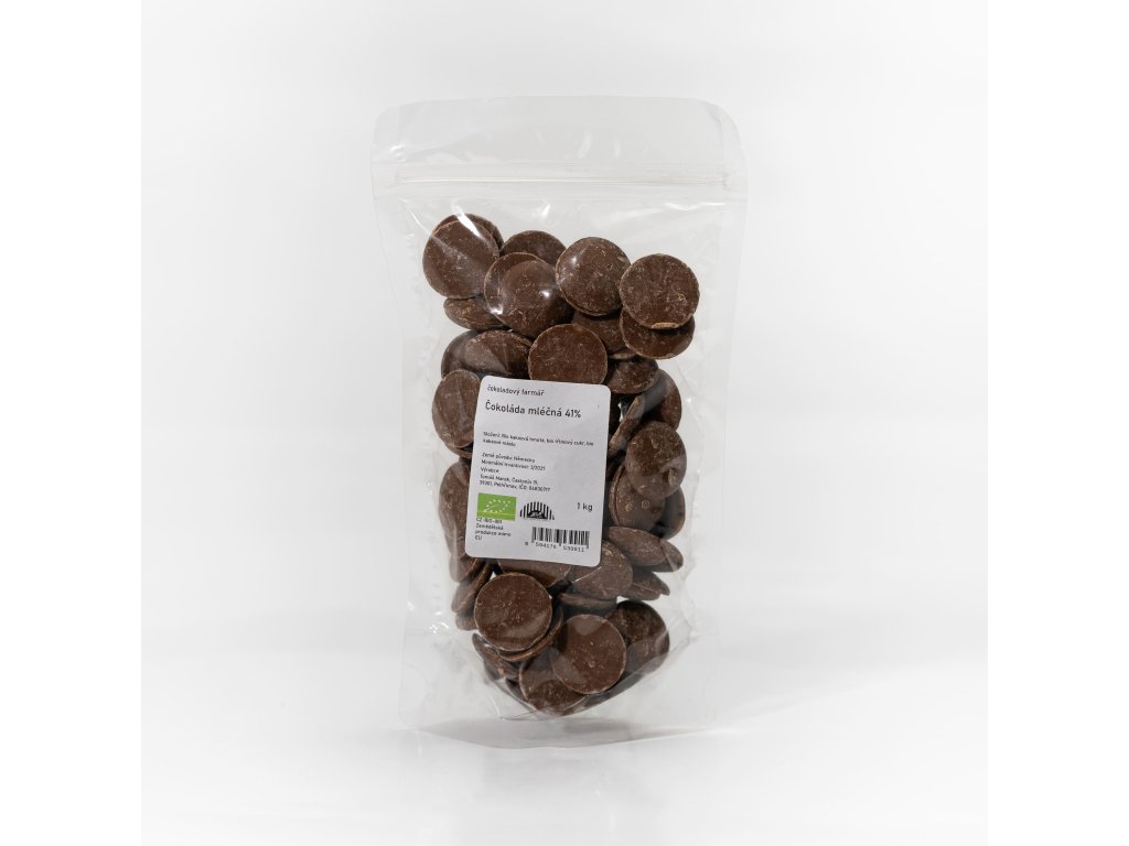 Poctivá bio mléčná čokoláda s obsahem 39% kakaových částí bez lecitinu.