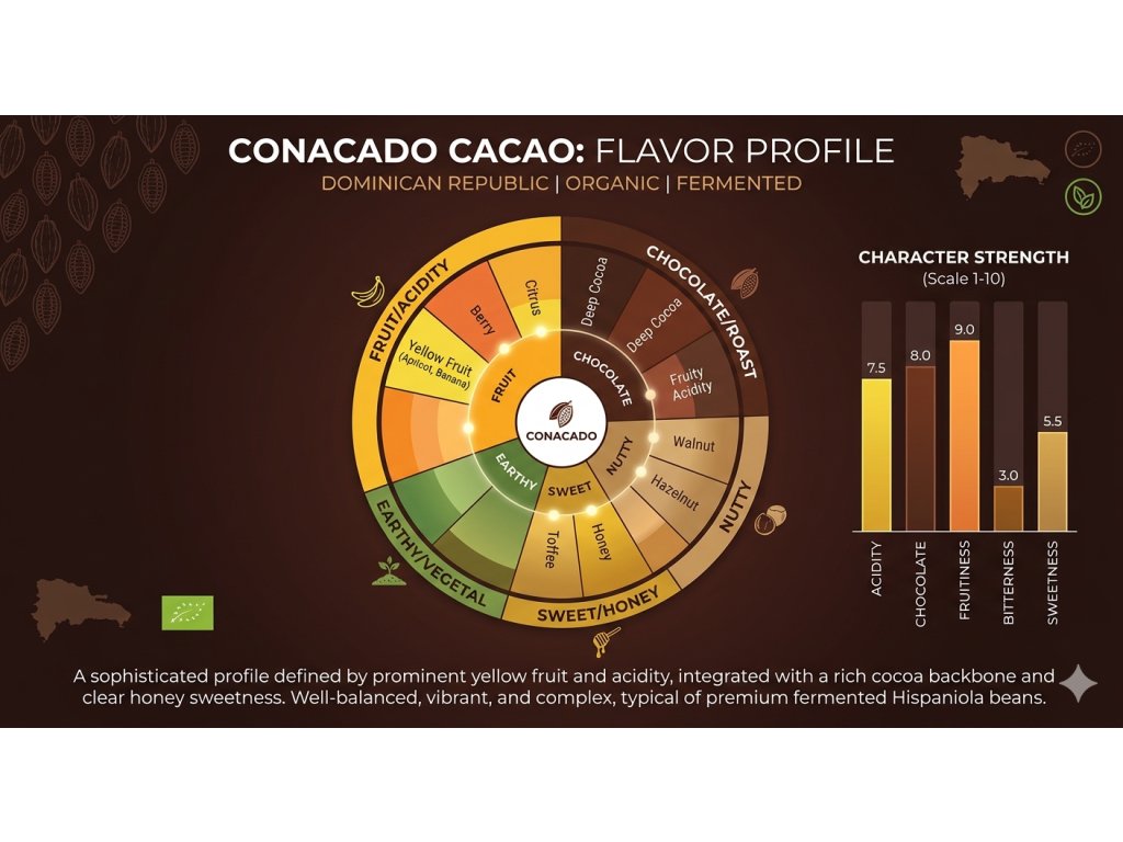 Odrůda: Hispaňola, což je místní vysoce kvalitní fermentované Trinitario